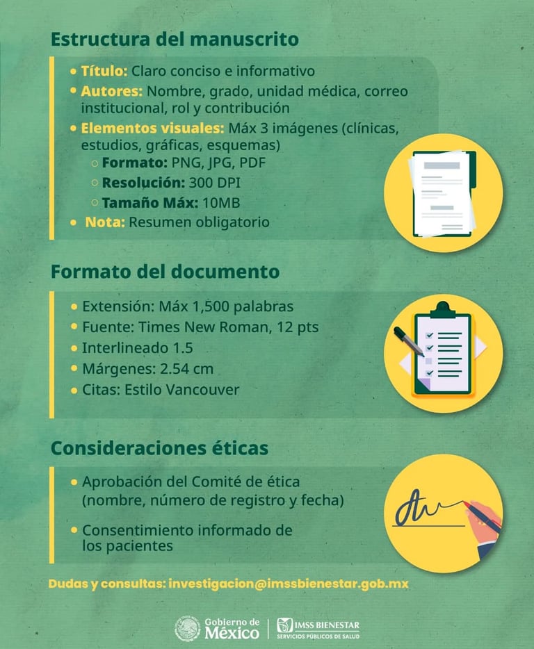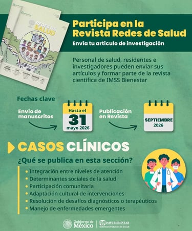 🗓️ Envía tu artículo antes del 31 de mayo de 2026 a 📩 investigacion@imssbienestar.gob.mx y forma parte de esta comunidad científica.
